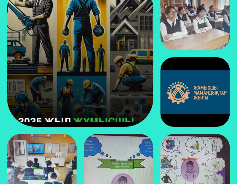 Тәрбие сағаты барысында “2025 жыл- жұмысшылар жылы” болып жариялануына орай қазіргі таңда сұранысқа ие жұмысшы мамандықтар жайлы таныстырылым жасалды. Оқушылар керемет эмоцияда болып, өз ойларын бiлдiрдi, сонымен қатар сұрақ жауап жүргізілді.