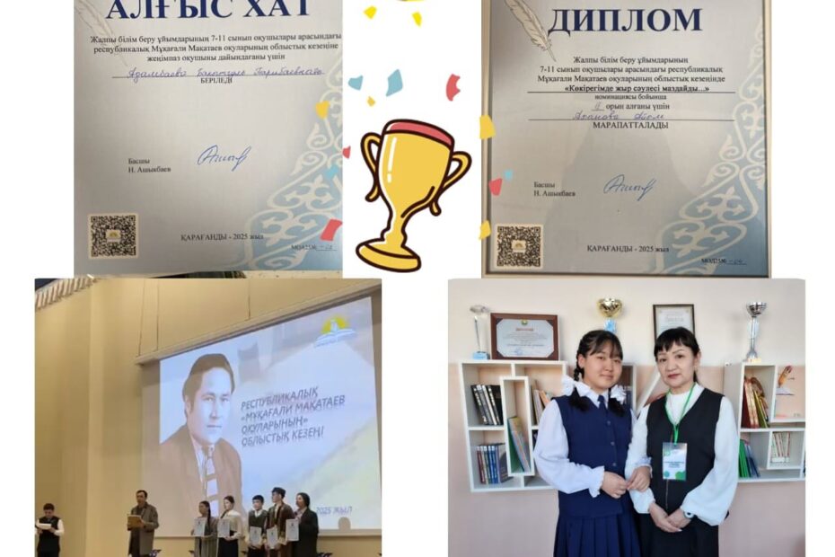 ,,Мұқағали Мақатаев оқулары,, байқауының қалалық кезеңінде І орын иеленіп, облыстық кезеңге жолдама алды!Сәуір 3, 2025Сәуір 3, 2025